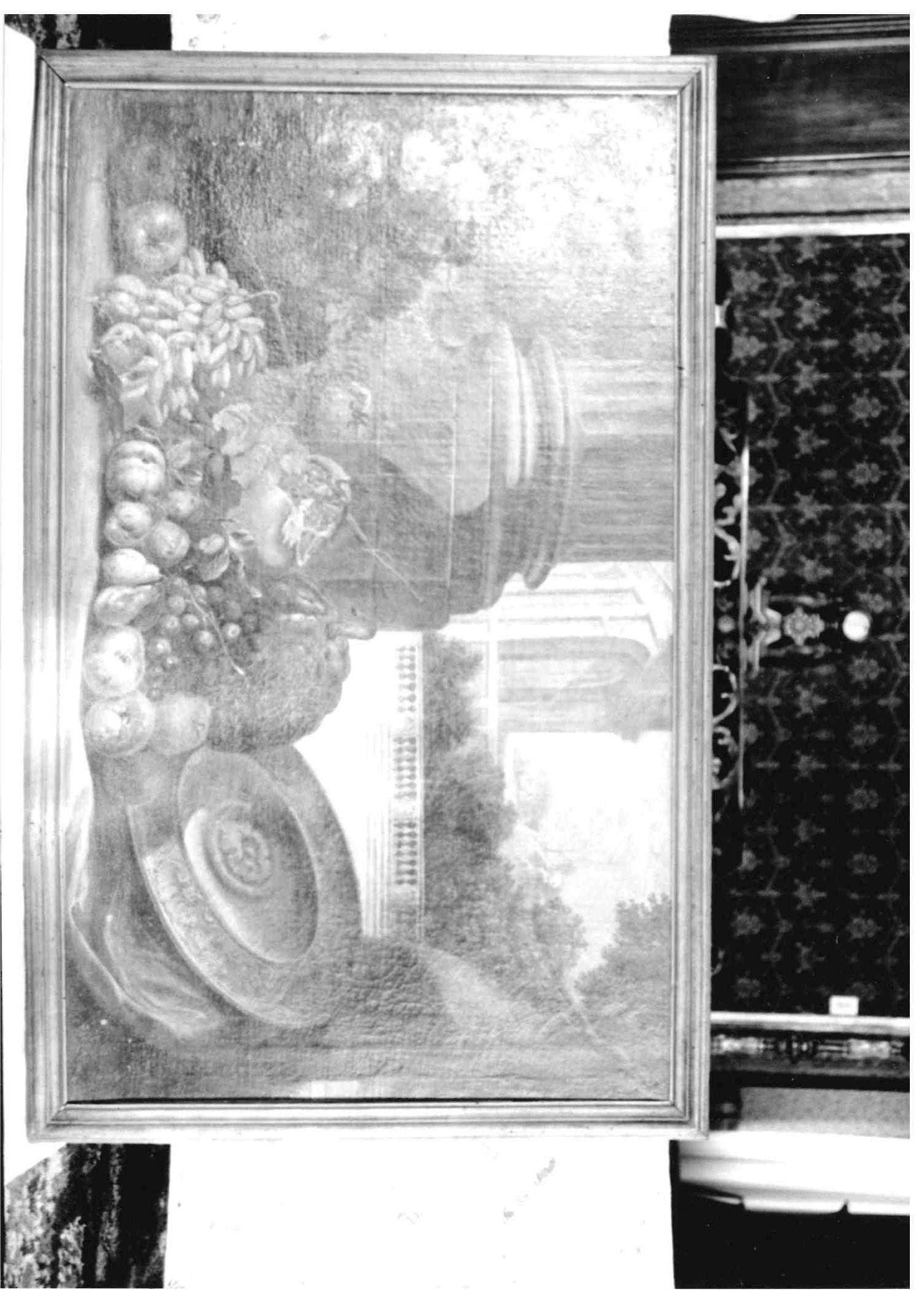 natura morta con piatto e architettura sullo sfondo (dipinto, opera isolata) - ambito italiano (seconda metà XVII)